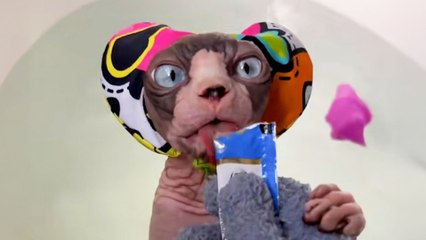 Hairless Cat Needs To Be Bribed To Get Out Of Bath