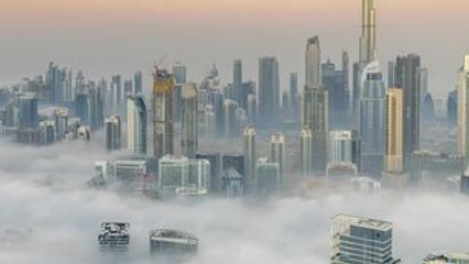 Moon Sets Behinds Dubai Skyline Before Sunrise
