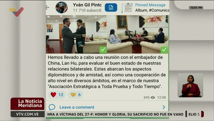 Canciller Yván Gil se sostuvo fructífera reunión con el embajador chino Lan Hu