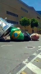 Carro alegórico quebra e boneco gigante de Lula usado no Carnaval é arrastado no asfalto