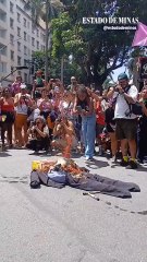Com roupa de presidiário, foliões levam boneco de Bolsonaro para Mudança do Garcia