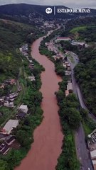 Chuva em Sabará: drone mostra cheia do Rio das Velhas
