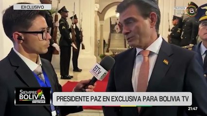 Presidente Paz visita el stand de Bolivia en el foro de CAF y habla con medios internacionales