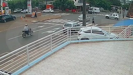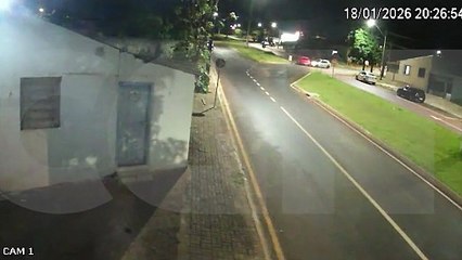 Câmera de segurança flagra colisão entre carro e moto em rotatória de Cascavel