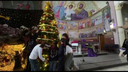 A Gaza i bambini palestinesi decorano l'albero di Natale