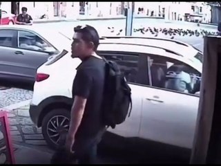 Moto bate na traseira de carro e câmera flagra condutor indo embora