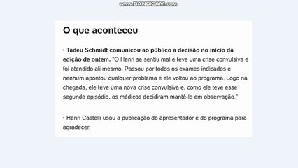 Momento em que Henri Castelli teve uma crise de convulsão durante a Prova do Líder!