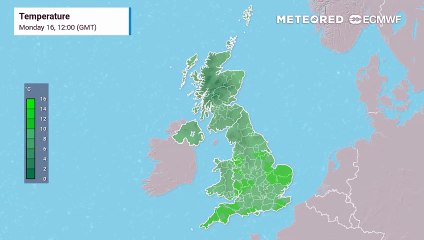 UK temperature maps show mild temperatures to start the week, with highs close to 20°C by Wednesday