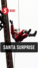 Guatemalan firefighter rappels from bridge as Santa to surprise children