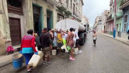 Largas colas en Cuba para recoger agua en cisternas en plena crisis de combustible