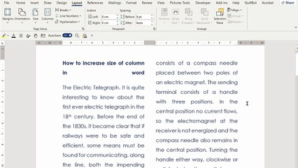 how to increase size of column in word