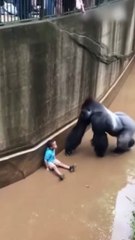 An unexpected reaction from the gorilla when the child fell into its enclosure رد فعل غير متوقع...