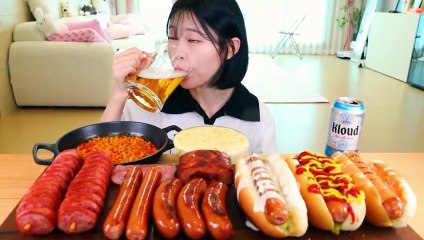 ASMR MUKBANG | Grilled Sausage Party! Fire Noodles, Amecican Hot Dog, Corn Cheese Eating
