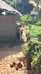 Tiger attacks man and sits on cot