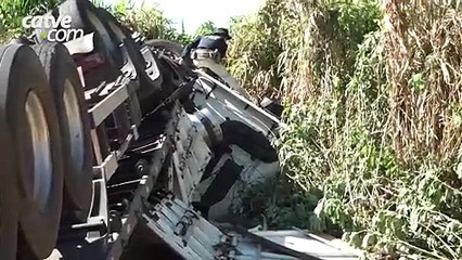 Caminhoneiro sobrevive a acidente com caminhão despedaçado na BR-373