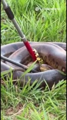 Vídeo: Sucuri de 70kg é encontrada em área urbana de Uberlândia