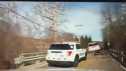 Wild chase sees police SUV end up on the back of flatbed trailer being pulled by fleeing suspect