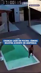 Duas crianças caem em área funda de piscina; vídeo flagra acidente.