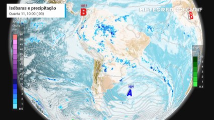 Quarta-feira, 11 de março: Previsão de chuva, nebulosidade e pressão a nível médio do mar entre...