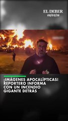¡Imágenes apocalípticas! Reportero informa con un incendio gigante detrás