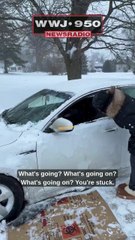 Car stuck in the snow off Gratiot Ave. in Roseville