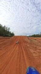 Poodle Takes Flight After Jumping Dirt Track Ramp Beside Dirtbike Rider