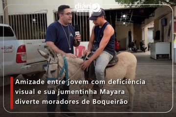 Amizade entre jovem com deficiência visual e sua jumentinha Mayara diverte moradores de Boqueirão