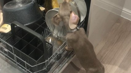Sneaky mini dachshund takes over dishwashing duty with her adorable plate-licking skills