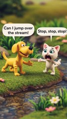 The dog jumps over the stream but fail