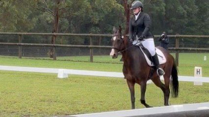 Rider loses balance mid-performance after horse suddenly freaks out