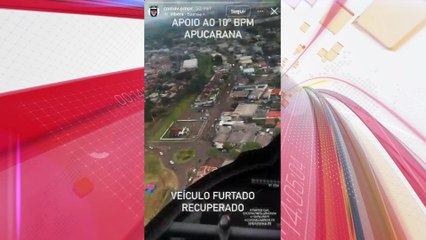 Câmera de helicóptero flagra PM recuperando carro furtado em Apucarana