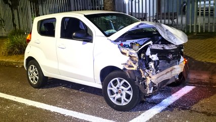 Forte colisão envolvendo Fiat Mobi e HB20 é registrado no Centro de Cascavel durante a madrugada