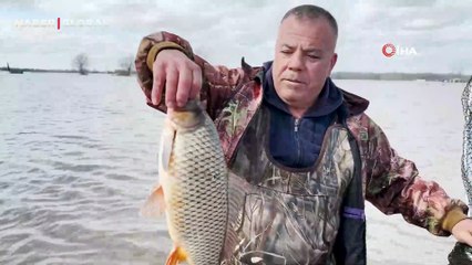 Edirne'de şaşırtan anlar, Meriç'in taşması sonrası tarlada sazan avı başladı