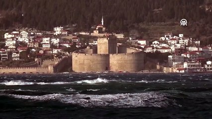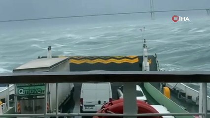 Çanakkale Boğazı fırtına nedeniyle kapatıldı, feribot seferleri durdu, dev dalgalar sahili dövdü
