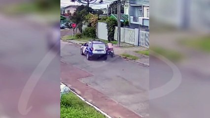 Viatura da GM cruza até o canteiro para tentar alcançar motociclista em fuga