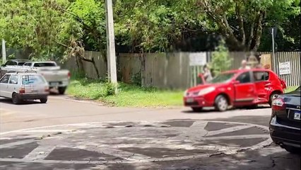 Sandero e Hilux se envolvem em acidente em rotatória no bairro Cancelli, em Cascavel
