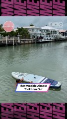 Man Leaps Onto Paddleboard and Nearly Loses Balance Before Stabilizing