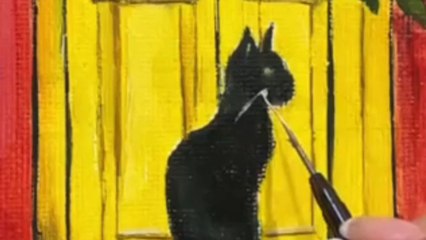 Artist brings online photo of black cat and old red house to life through a beautiful painting