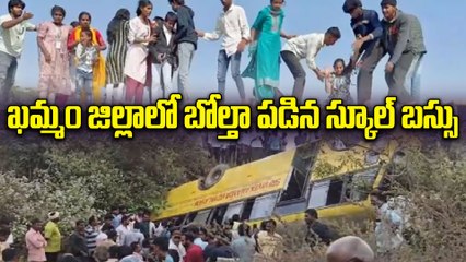 Khammam - బోల్తా పడిన స్కూల్ బస్సు | 20 మంది విద్యార్థులకు గాయాలు | Oneindia Telugu