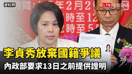 中配立委李貞秀放棄國籍爭議 內政部要求明天之前提供證明