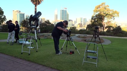 Crowds gather in Perth to take in rare lunar eclipse