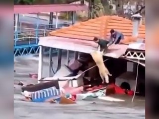 Herzzerreißend: Männer retten Hund vor Hochwasser