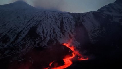 Impresionantes imágenes del Etna lleno de nieve en plena erupción