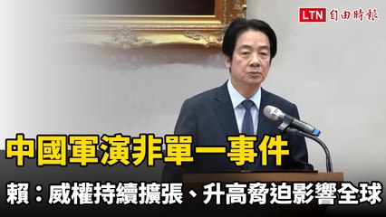 中國軍演非單一事件 賴清德:威權持續擴張、升高脅迫影響全球
