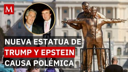 Instalan estatua de Donald Trump y Jeffrey Epstein como Jack y Rose de Titanic