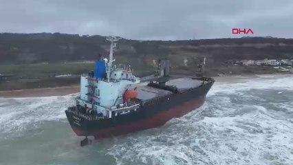 Sarıyer'de karaya oturan gemi havadan görüntülendi