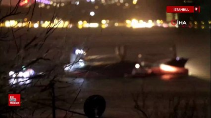 Sarıyer açıklarında kurtarılan gemi bu sefer İstanbul Boğazı’nda fırtınada savruldu