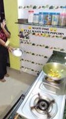 Woman Cooks Popcorn in Open Wok