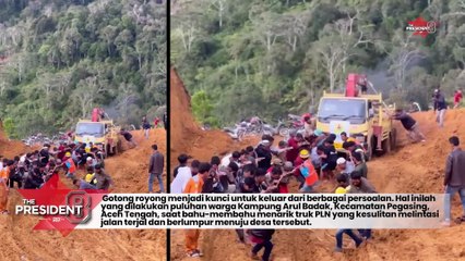 Momen Gotong Royong Petugas dan Warga Aceh Tengah Tarik Truk Pembawa Material Listrik