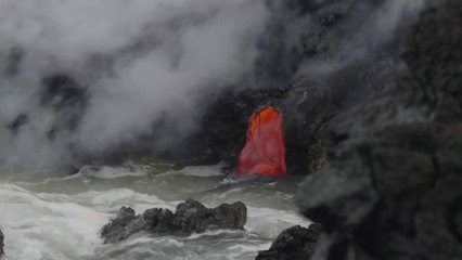 Les images de la rencontre entre la lave et l'océan sur l'île de La Réunion après l'éruption du...